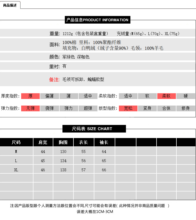 6155 毛领为100%羊毛,请代理尺码表替换下,需要吊牌水洗唛的重新下载下