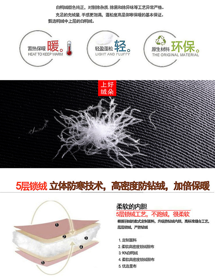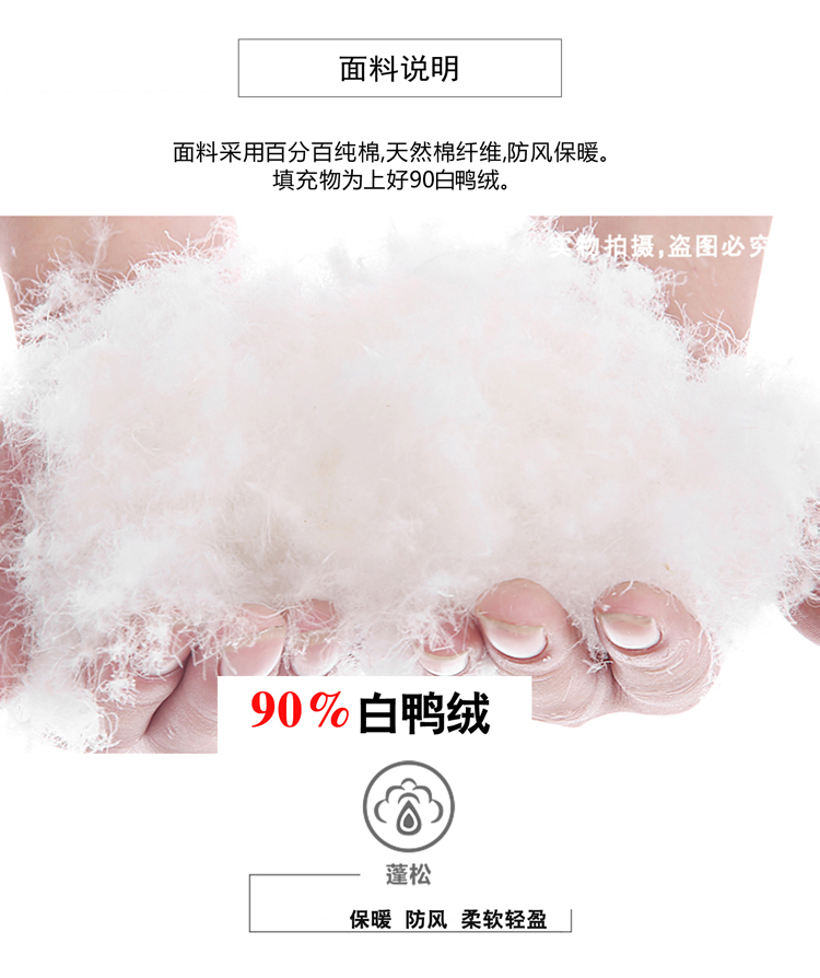 填充物:白鸭绒(绒子含量90%)毛领:水貂毛